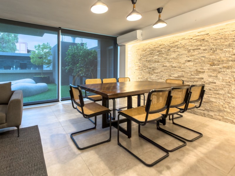 Cuenta con piso flotante vinílico SPC repelente al agua y ventanas de PVC con termopanel para mejor aislacion térmica y acústica.